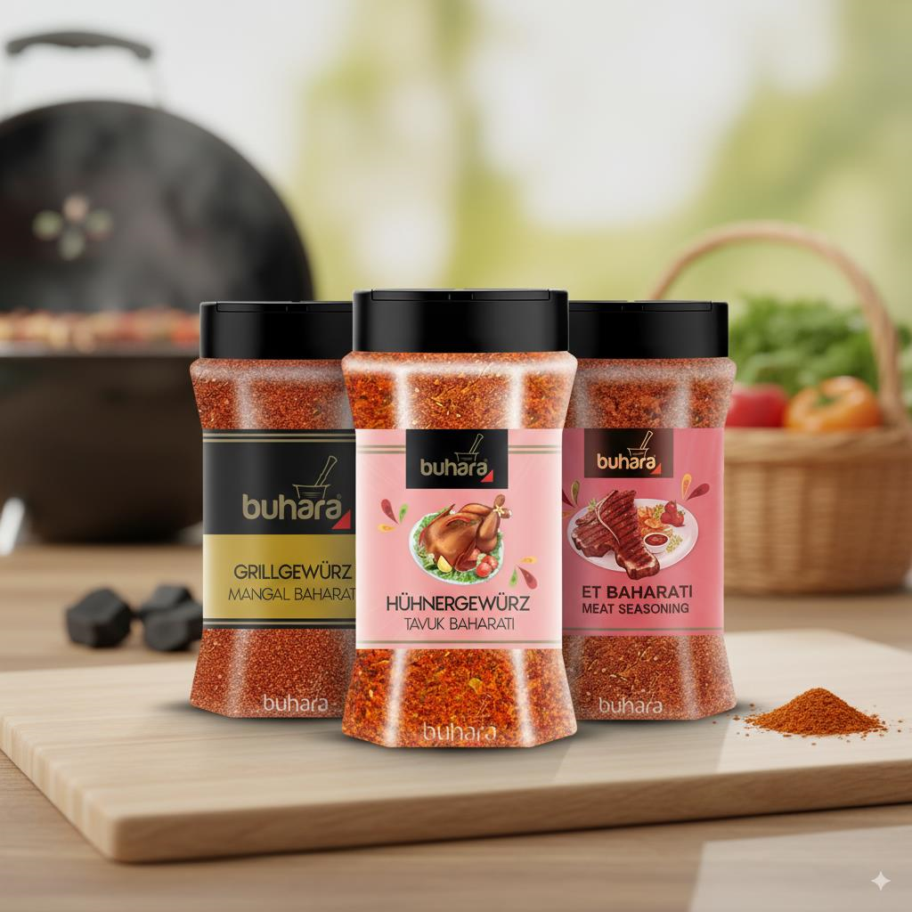 Buhara Baharat Tavuk PET 200 GRBuhara Baharat Mangal PET 200GRBuhara Baharat Et PET 150 GR