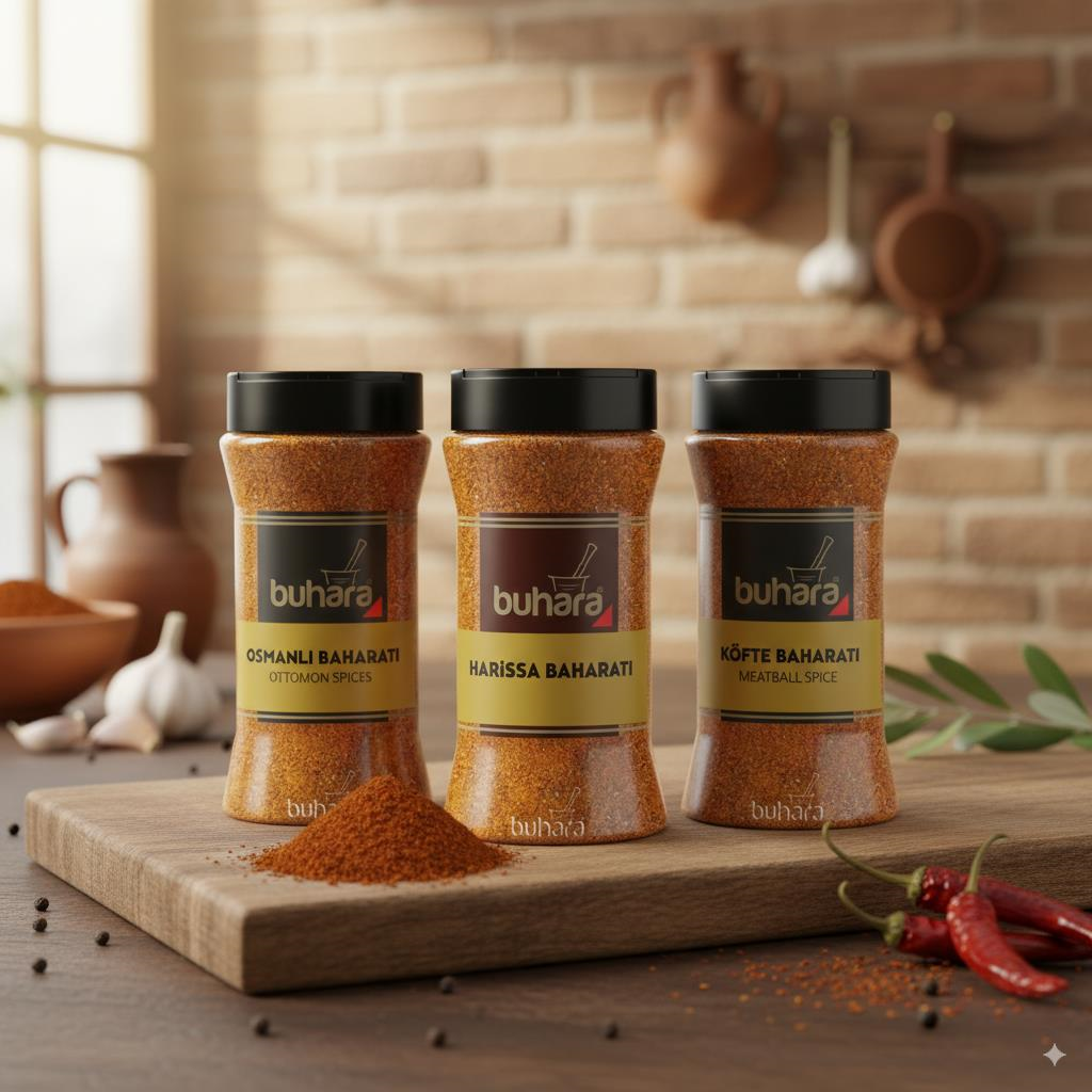 Buhara Osmanlı Baharat PET 160 GRBuhara Harissa Baharat PET 180 GRBuhara Köfte Baharat PET 200 GR