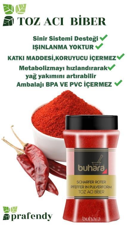 BUHARA TOPTAN TOZ ACI BİBER 150 GR x 12 Ad. PET (KOLI-0184)